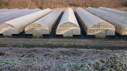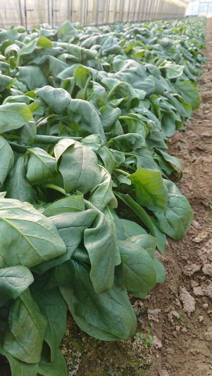 今年もあっという間に3月ですね。春の足音がすぐそこまで聞こえてきてます、なんだか嬉しいですね!冬の間なかなか伸びなかった野菜もぐんぐん成長中なんですが、日中暖かいおかげで朝の冷え込みが凄まじいです。放射冷却ってヤツですね。そのせいで朝だけは野菜も凍っちゃってます。