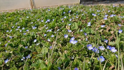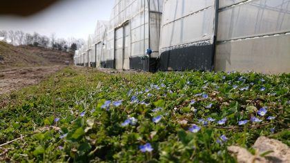 圃場を見回りしてるとチラホラ青っぽい小さな花が…。これはオオイヌノフグリですね!春の訪れを真っ先に教えてくれる花です。注意深く周りを見渡せばいろんな所に春を感じられるので、仕事をしててもちょっと楽しくなってきますね!
