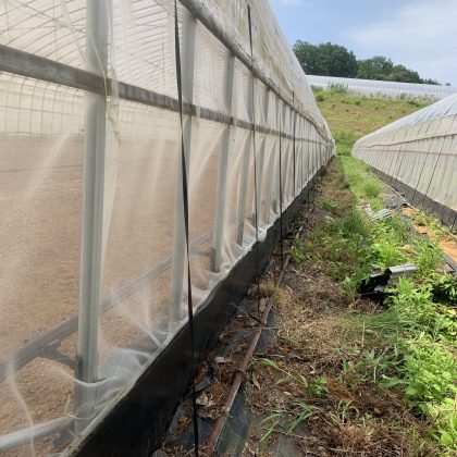ビニールハウス内に大量の水を撒き土壌表面にビニールシートを敷く。最後に全てを完全に閉め切ったら、あぁハウス内は一瞬で高温熱湯地獄。。いったい温度はどれ位になっているのか測ってほしいです! これを数週間かけて土壌をリセット。