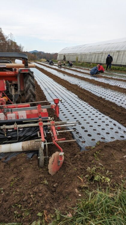 本格的な寒さがやってまいりました。ついこの間まで季節外れの暖かさ…みたいなフレーズをよく聞いてたんですが、あまりの季節の進み具合に体がおかしくなりそうですね。さて佐々木農場では12月初旬から玉ねぎの定植が始まってます。去年は試験的に二千本を定植しましたが、今年の定植は約1万本と大幅UPされてます。沢山の玉ねぎが出来上がるのを期待するとともに、皆さん風邪など引かず良いお年を…
