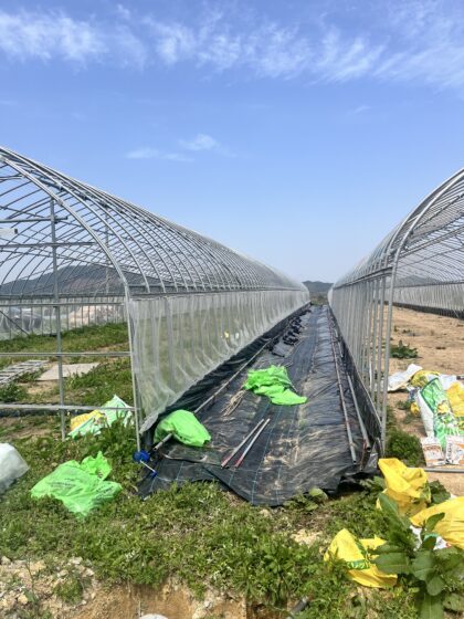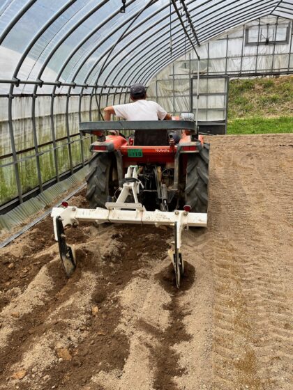 3月は天気が悪く例年より遅く、4月上旬より繁忙期がやってきました!今のところ順調に栽培・出荷へと作業が進んでいます。合間をみては、新しいハウスの建設、昨年から年に一度行っているプラソイラーを使った耕盤層の破砕、ケールの植え替え、新しく挑戦するズッキーニの播種等々。玉ねぎのベト病被害は心配しているところです。。。