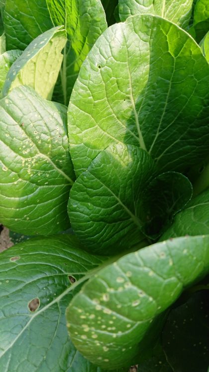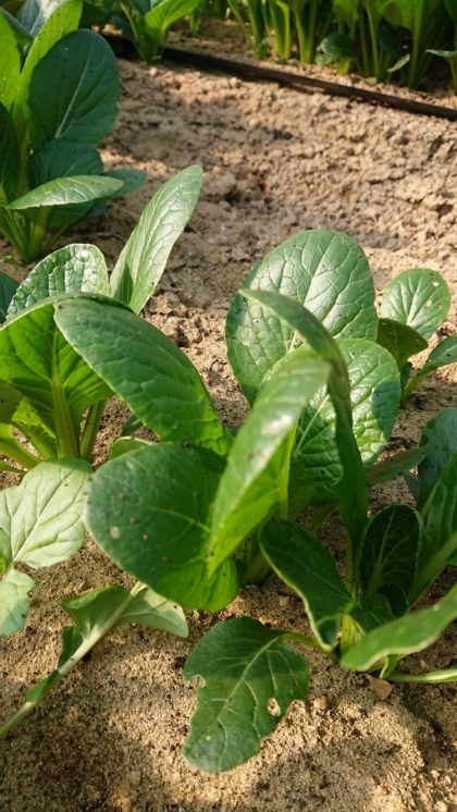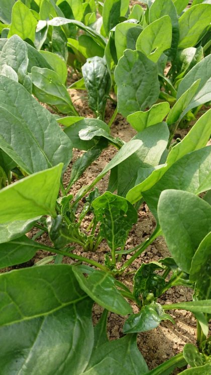 こんにちは~!分場栽培管理担当の鯨井ですよ!暖かくなって桜も咲いて春本番ですね!暖かくなって出てくるのが…虫の食害!小松菜に穴を空けてるのは「トビムシ」。ゴマみたいなのが犯人です。そしてほうれん草の葉の中心を、形が無くなるほど食べてるのは「ケナガコナダニ」です。有機栽培なので農薬は使えません。対策が難しいですね~。