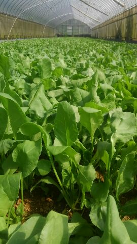 本場栽培担当の新治です!山ほうれん草の収穫が始まりました!!梅雨空のなかぐんぐんと成長しております。