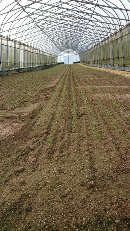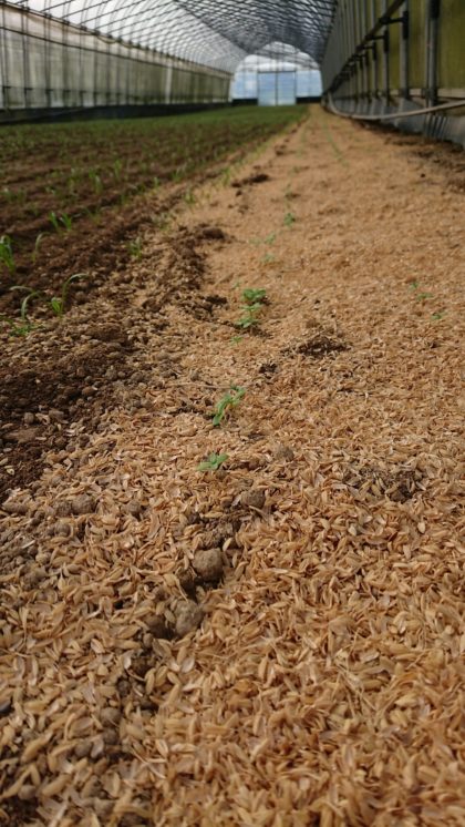 皆さんこんにちは。分場管理人の鯨井です。蝉の鳴き声も聞こえなくなってきて、風も涼しくなってきました。夏の間は暑さのため生長しないので、ストップしていたほうれん草の播種も再開しました。気温が急に下がったので発芽もバッチリです。それに合わせて同じハウスに苗用の大葉春菊の播種も始めています。