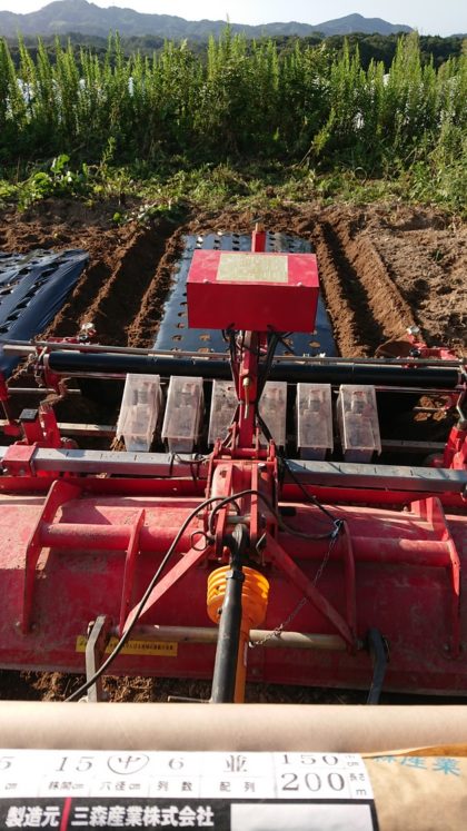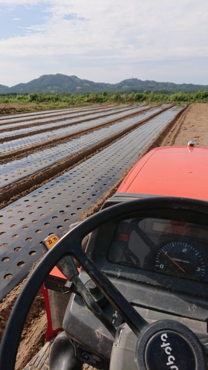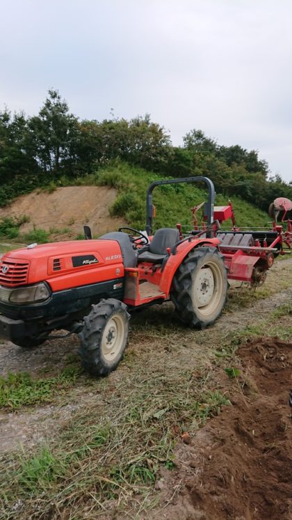 もう10月です、早いですね~。こんにちは!分場管理人の鯨井ですよ!トラクターのアタッチメントを付け替えて、露地のほうれん草の播種が全て完了しました。このアタッチメント、一回進むだけで耕耘、畝立て、マルチ張り、播種を全てやってくれる優れモノです。いろいろ微調整が難しいですが。発芽もしてたりしてなかったり…。台風でマルチが剥がれてたり剥がれてなかったり…。綺麗に生長してくれればいいな~と思いながら、見回る今日この頃です。