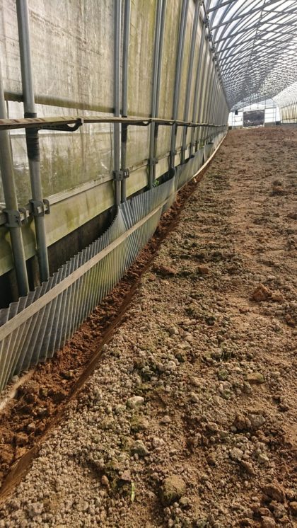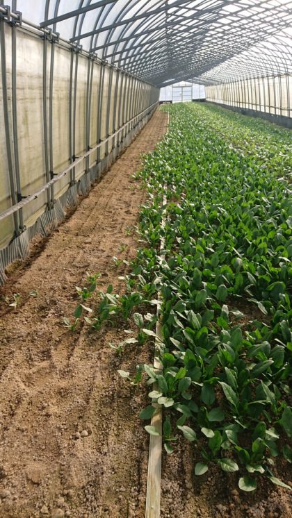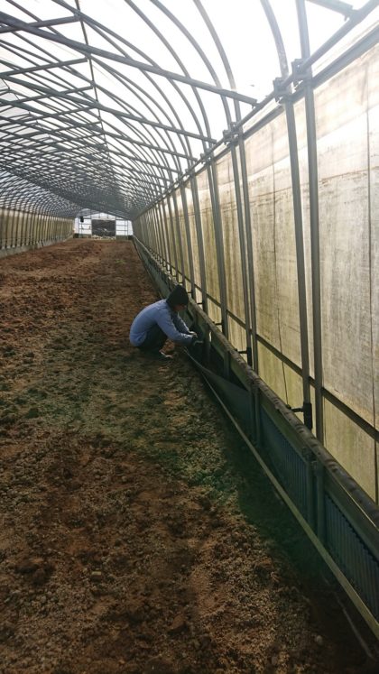 こんにちは!分場管理人の鯨井ですよ!大分気温が下がってきましたが、まだ本格的ではないですね。さて、野菜の収穫も落ち着きまして今はハウスサイドに溝を掘ってます。ダンゴムシやコオロギが隅に住み着いて野菜を食べるので、住み処を取り除いて食害を減らそうって作戦です。うまくいくかな~。