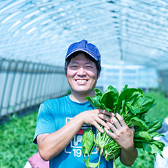 一言…僕は入社して15年になりますが、元々農業にも食にも興味がありませんでした。ですが、その間に結婚して子供が4人でき、子育てをするなかで料理も作るようになりました。その時初めて食の安全の大切さや有機農業の重要性に気付き始めました。誰もが安心して口にできる野菜を1年通して作り続けられるよう、毎年精進していきたいと思います。