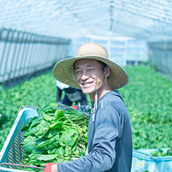 一言…社員の中では新人ですが、最年長のオールドルーキーです。毎日が勉強の日々で、悪戦苦闘していますが、消費者の皆さんに新鮮な野菜を食べていただけるように、これからも精進します。